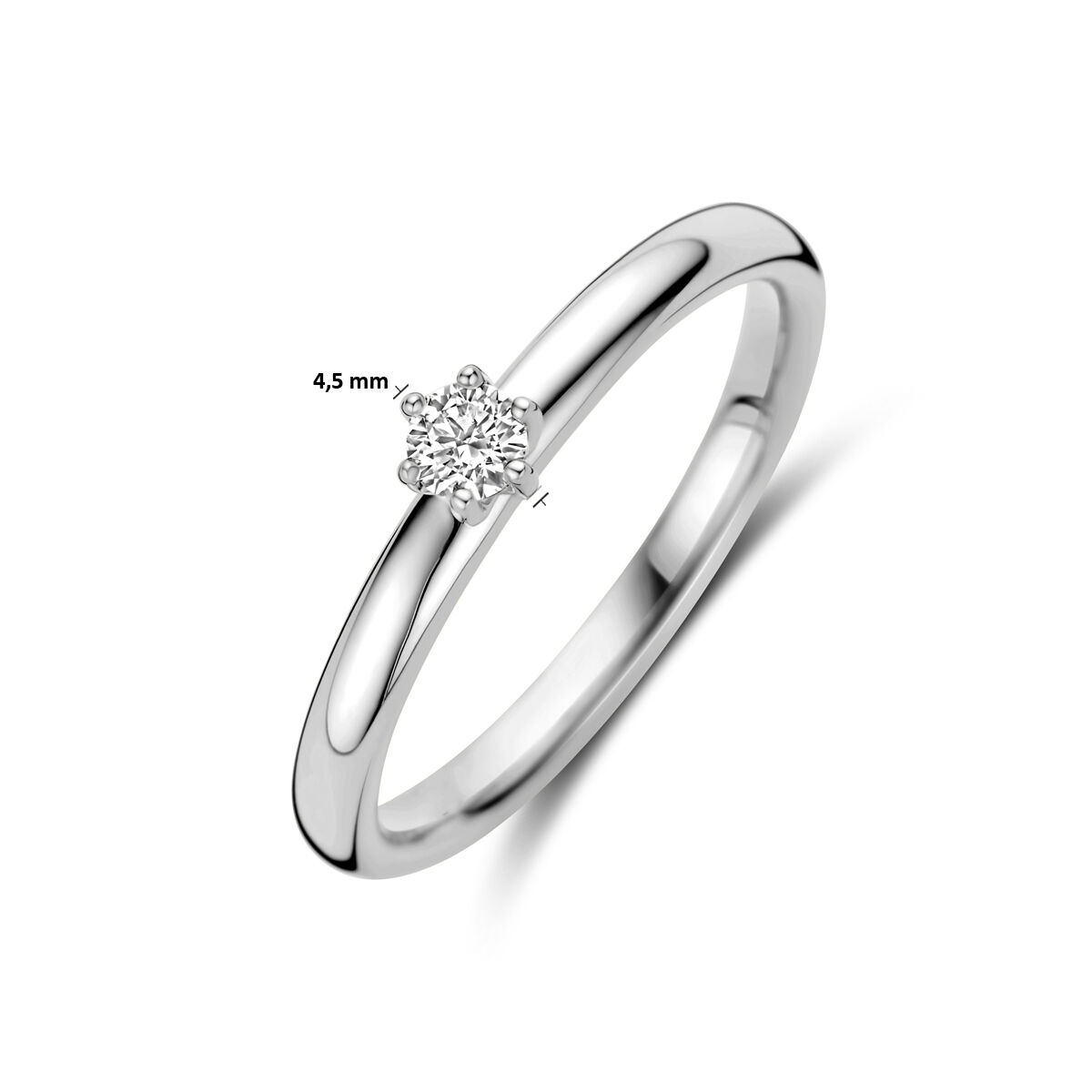 14k Geelgouden aanzoeksring uitgevoerd met diamant. De ring heeft een breedte van 4.5mm. De steenmaat is 3mm en het diamantgewicht is 0.10ct.