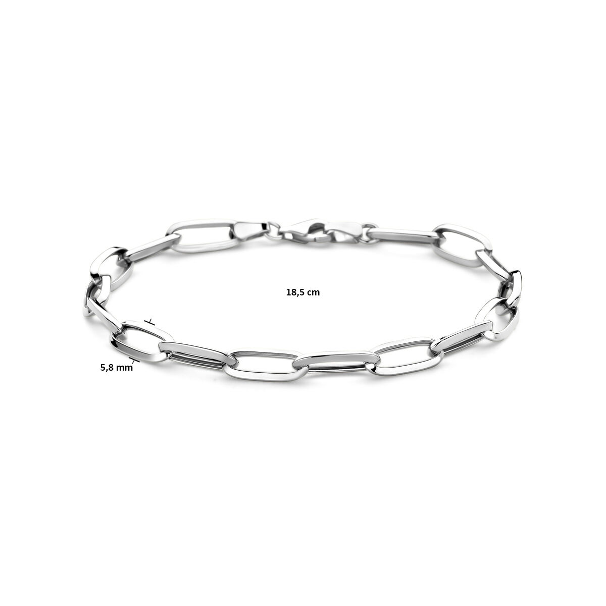 14k Witgouden armband met een schakelbreedte van 5.8mm. De armband is uitgevoerd met een karabijn sluiting en heeft een draaglengte van 18,5cm.