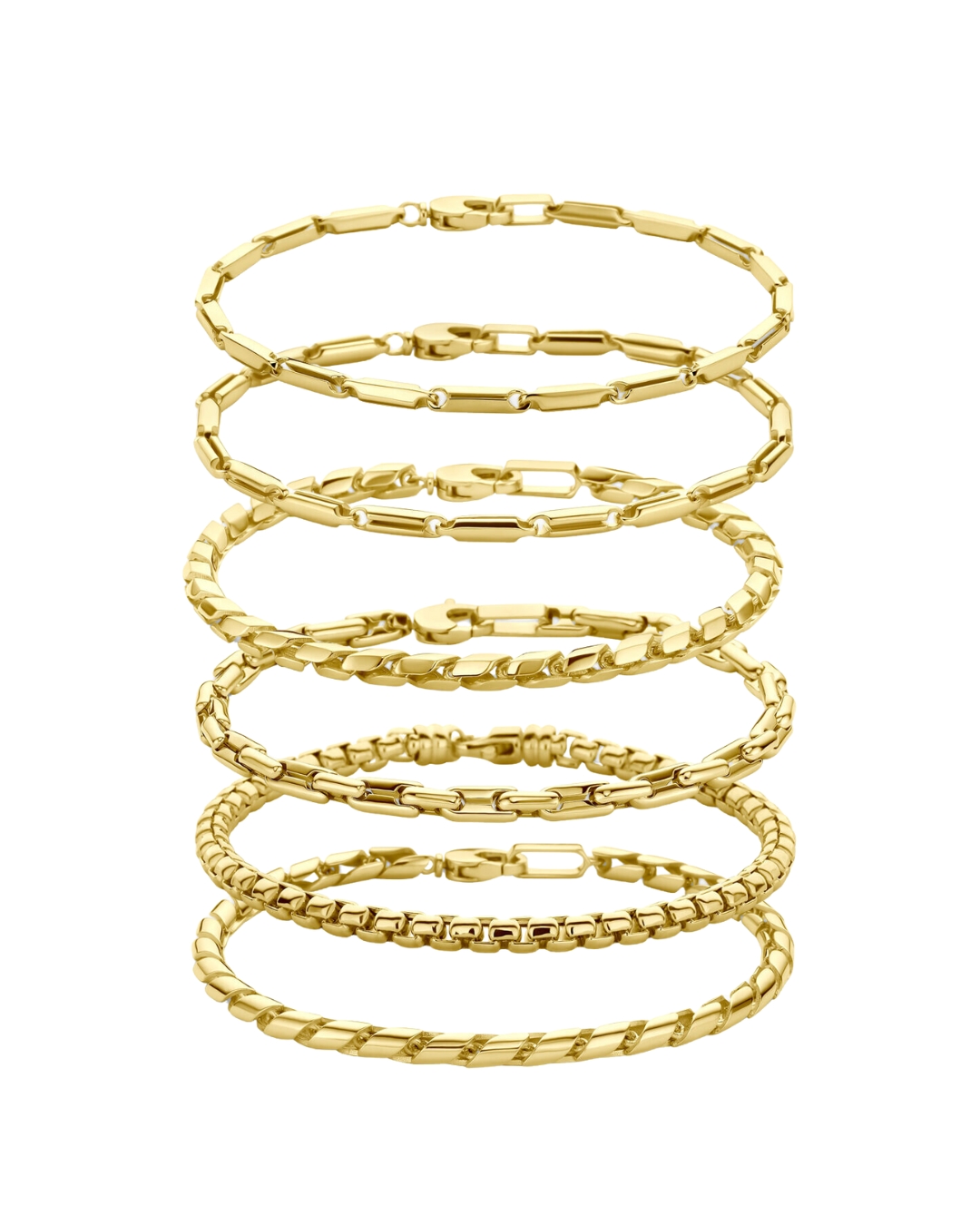 Armbanden zijn zeer geschikt om luxe aan uw outfit toe te voegen. Gouden armbanden, zoals stevige schakelarmbanden of subtiele bangles, zijn perfect voor mannen die een verfijnde maar stoere look willen. Een klassieke gouden armband kan je dagelijkse look net wat extra’s geven. Kies voor 18-karaat goud als u op zoek bent naar een investering die zowel in stijl als waarde blijft groeien. Gouden armbanden zijn veelzijdig en kunnen moeiteloos worden gedragen bij zowel casual als formele outfits.