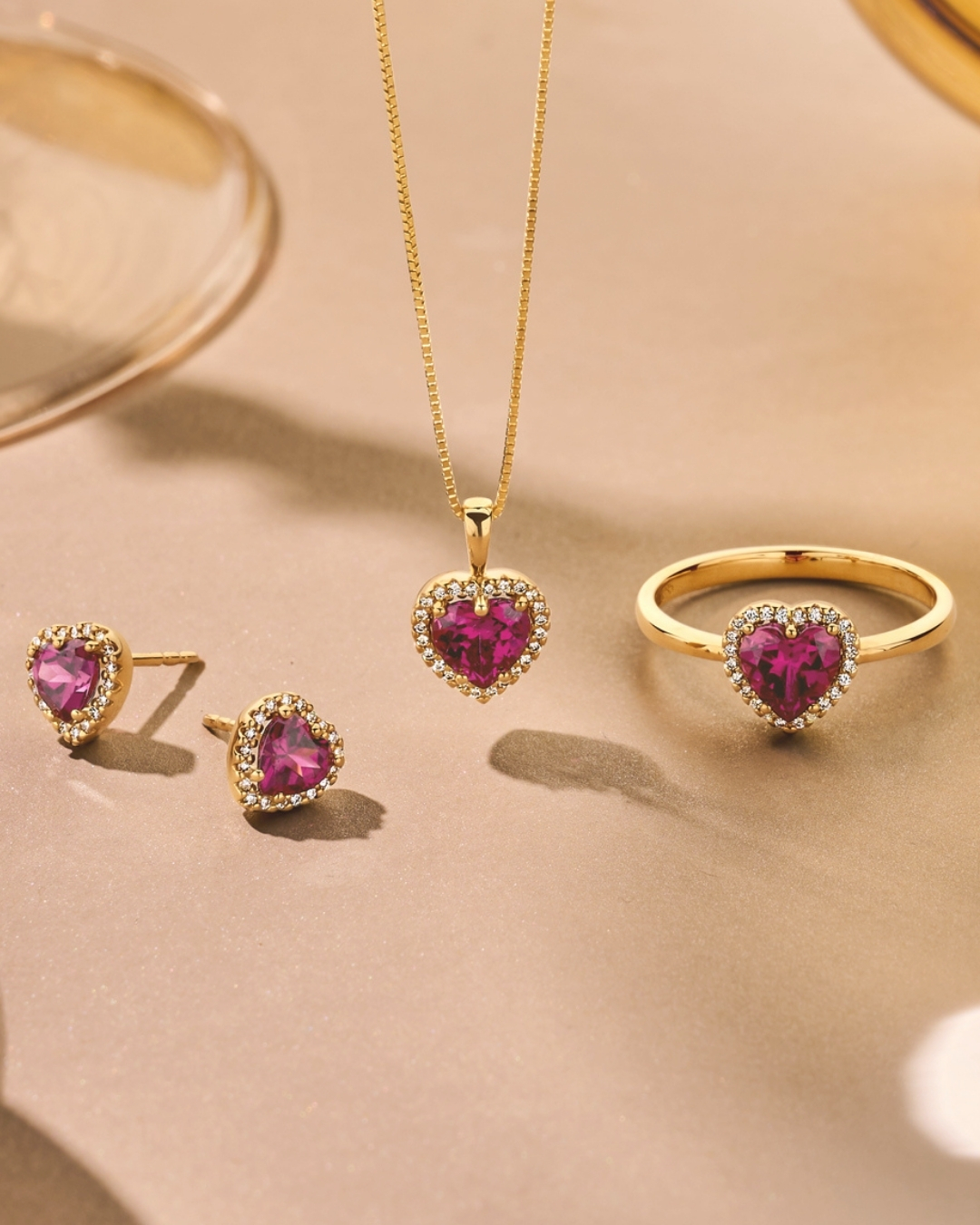 De diepe framboostint van rhodoliet voegt warmte en karakter toe. Het hart krijgt hier een intensere uitstraling, vrouwelijk, zelfverzekerd, betekenisvol.