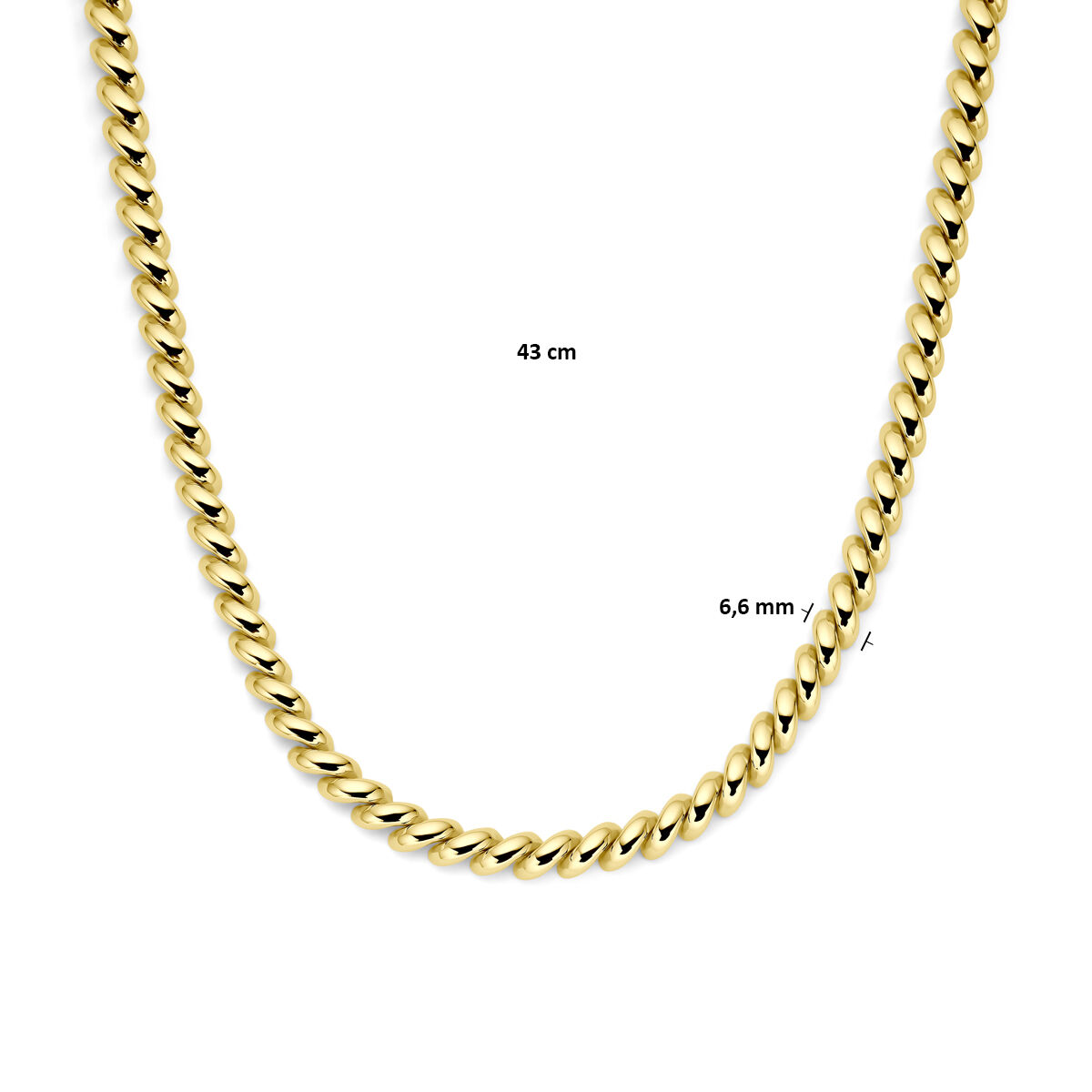14k Geelgouden San Marco collier uitgevoerd met een bakslot. Het collier heeft een draaglengte van 43cm en een schakelbreedte van 6.6mm.