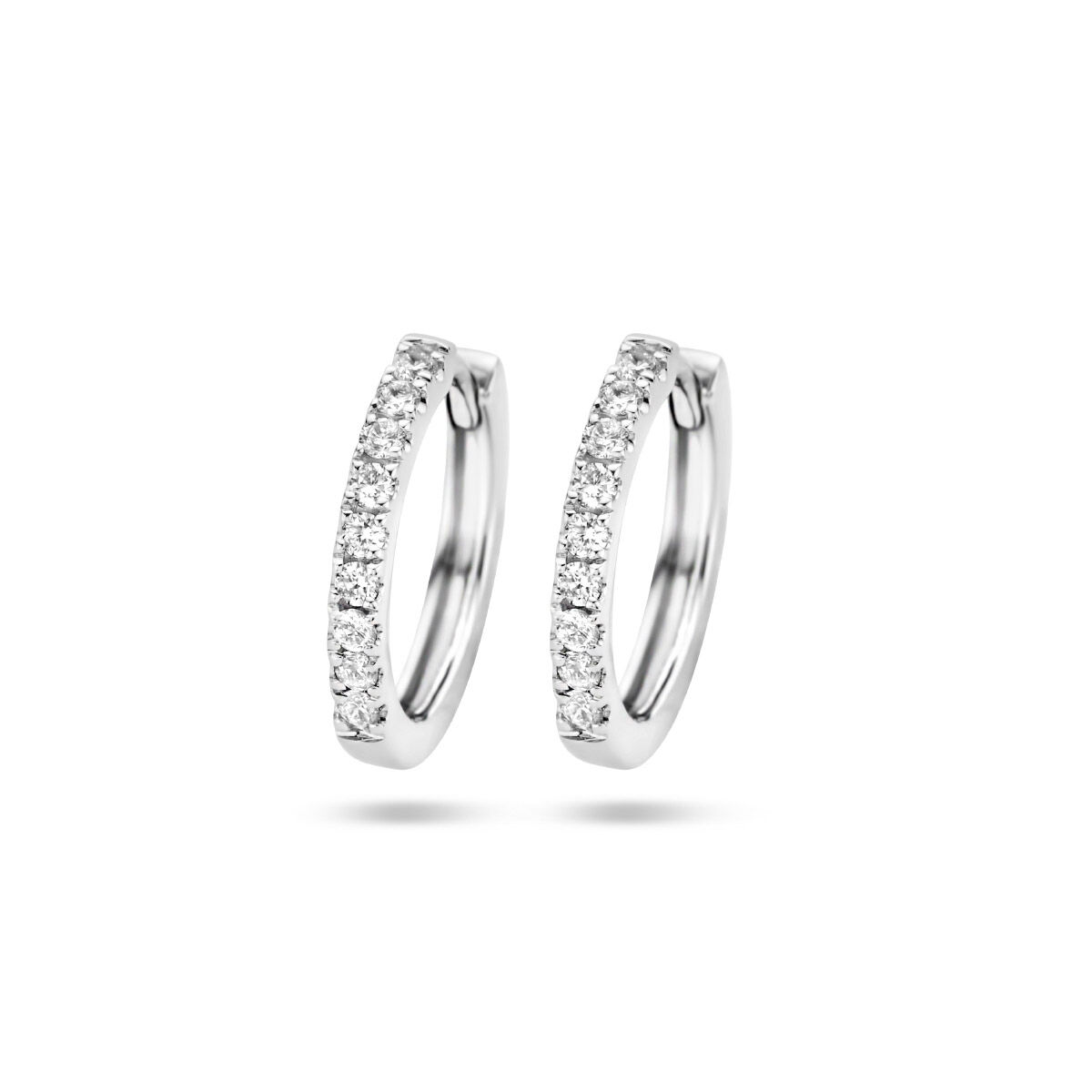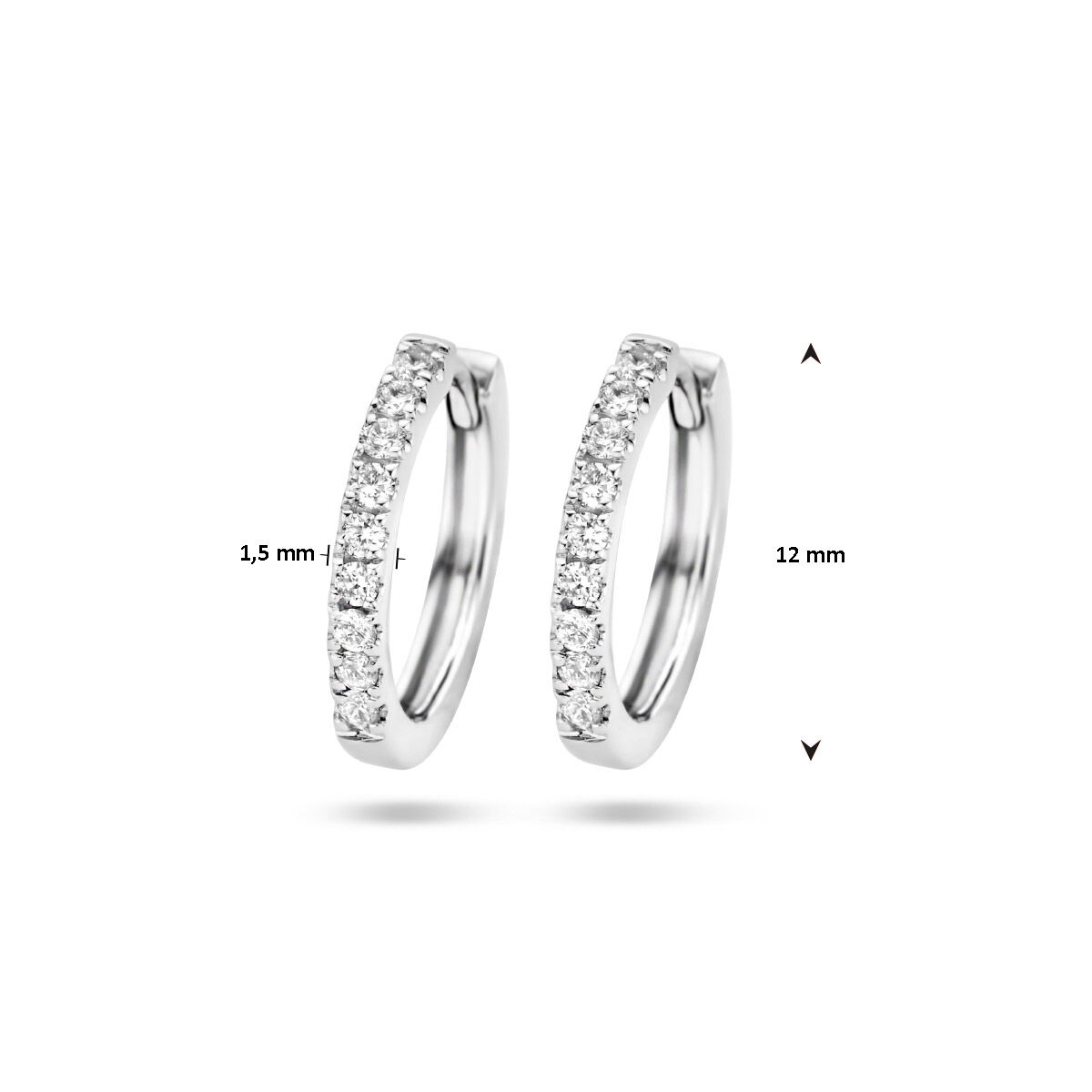 14k Witgouden oorringen met scharnier uitgevoerd met een schitterende diamant rij. De oorringen hebben een afmeting van 12x1.5mm.
