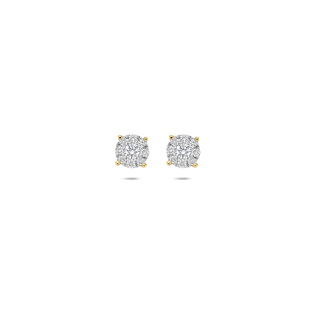 14k Bicolor geel en witgouden oorknoppen uitgevoerd met diamant. De oorknoppen hebben een diameter van 5mm. Het totale diamantgewicht is 0.25ct.