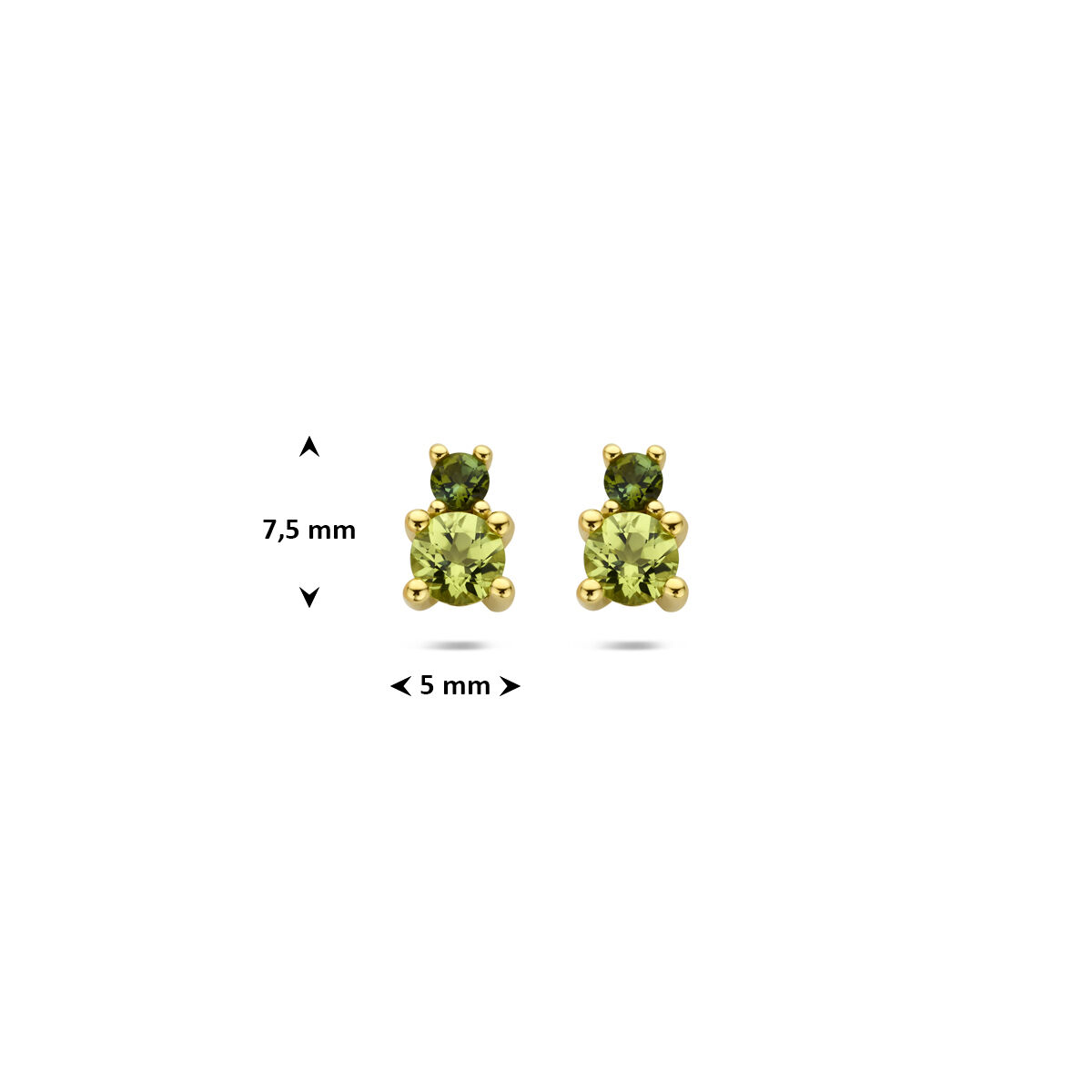 oorknoppen peridot en groen toermalijn 7,5 mm