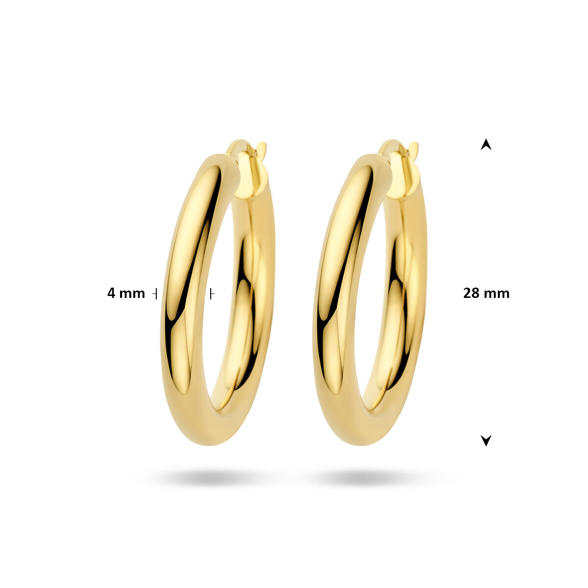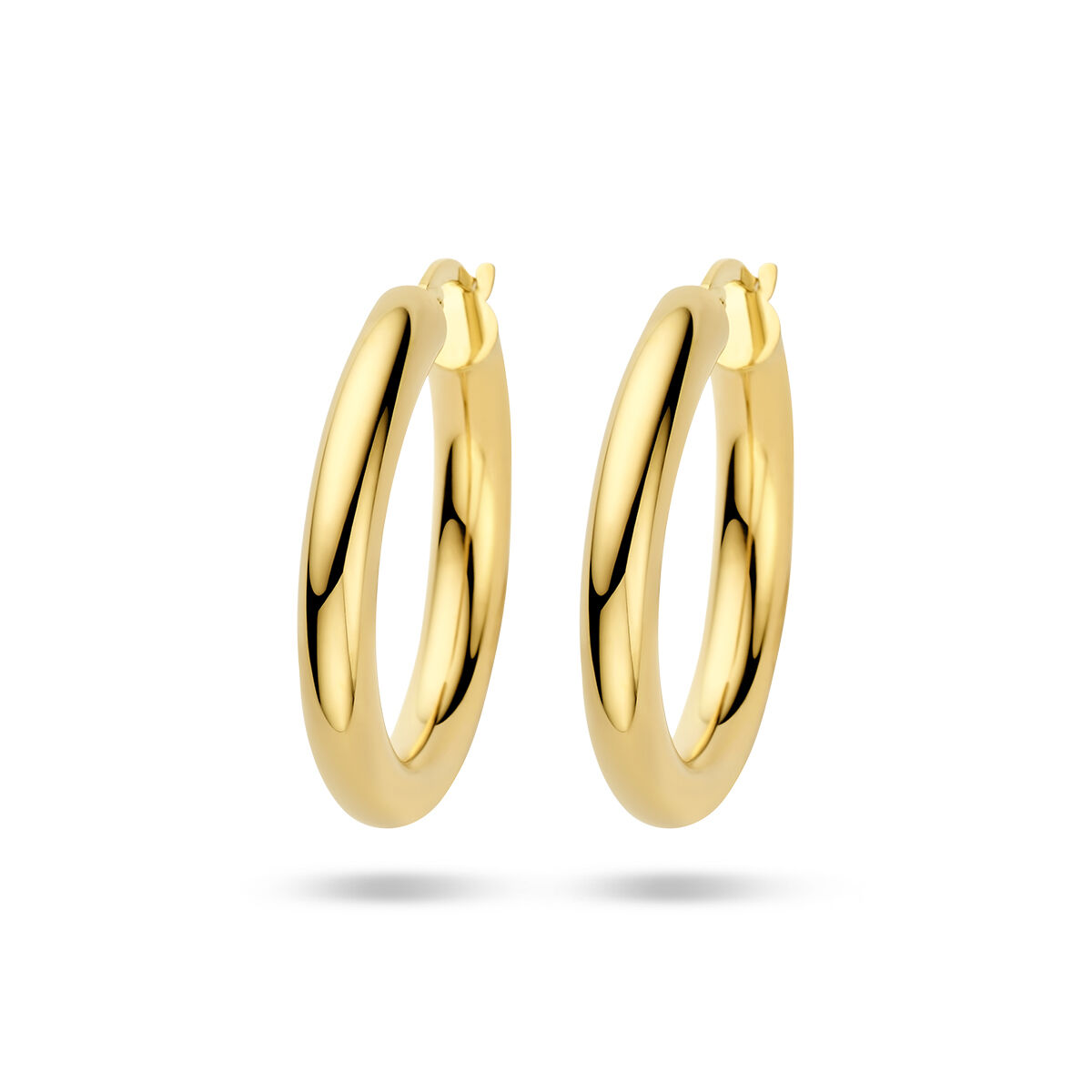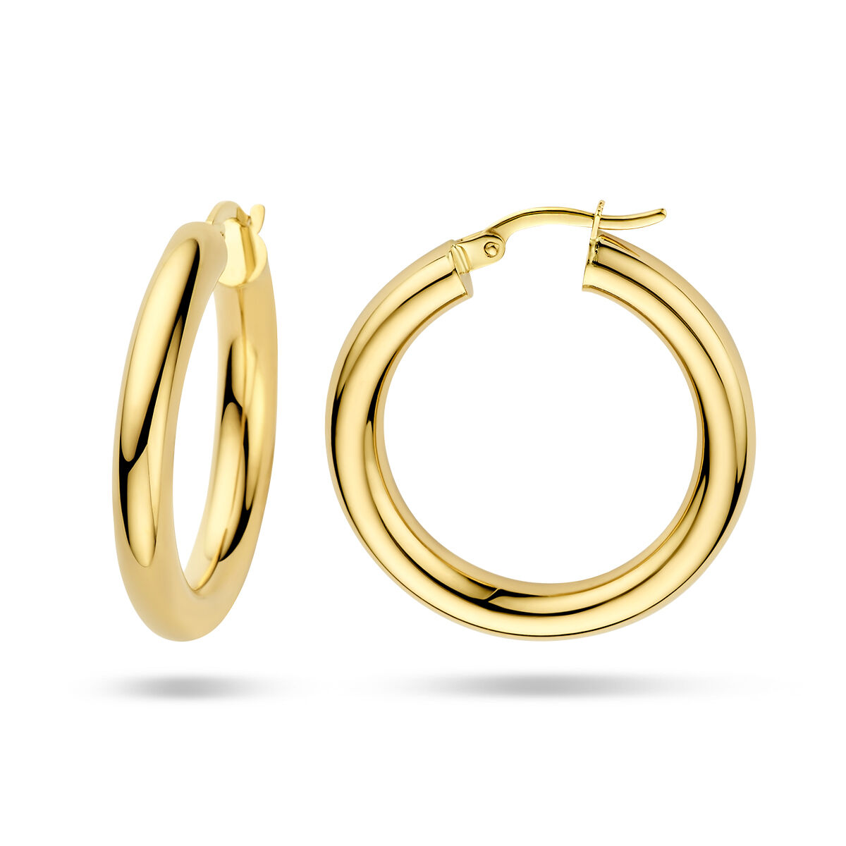 14k Geelgouden oorringen uitgevoerd met een stevige scharnier sluiting. De oorringen hebben een diameter van 21mm.