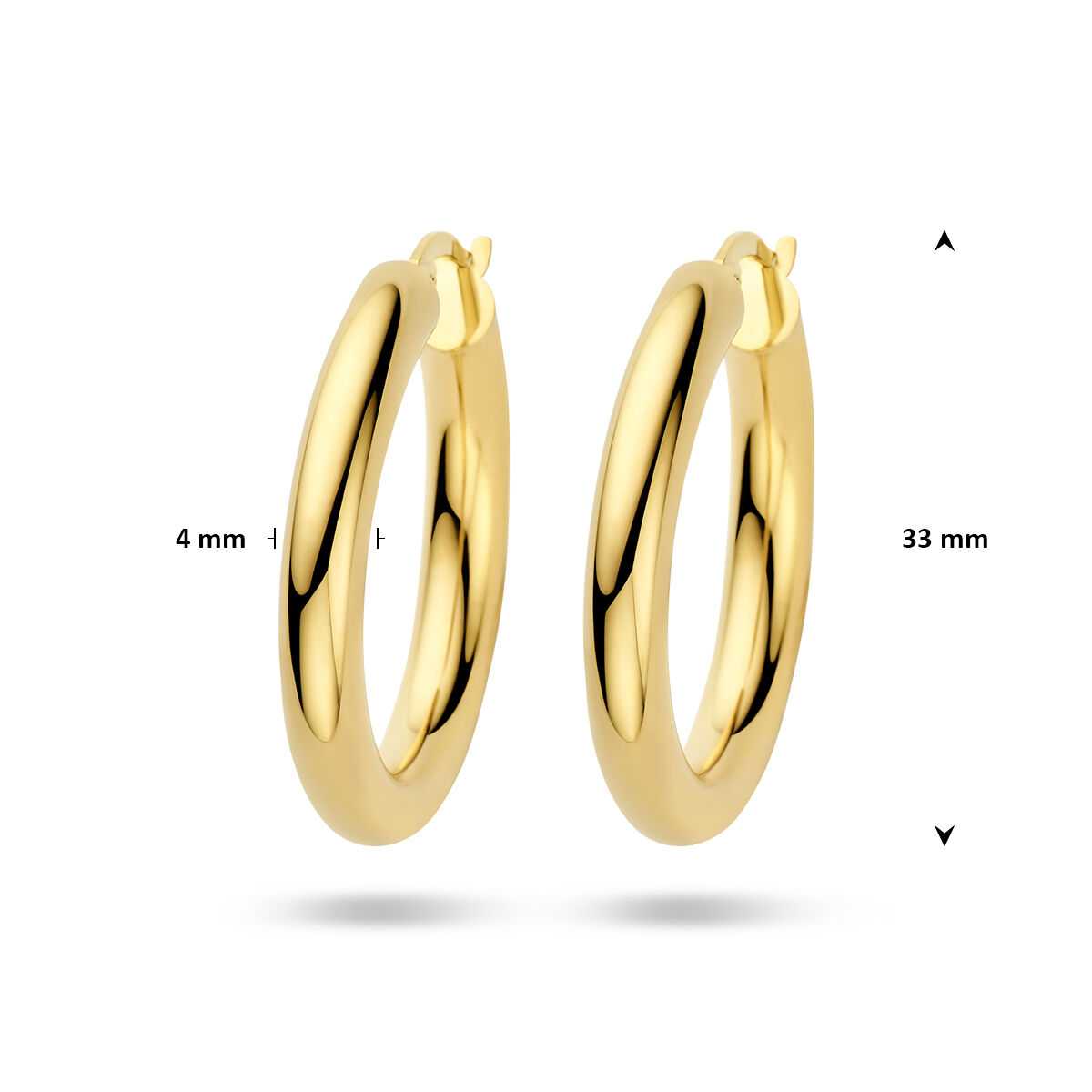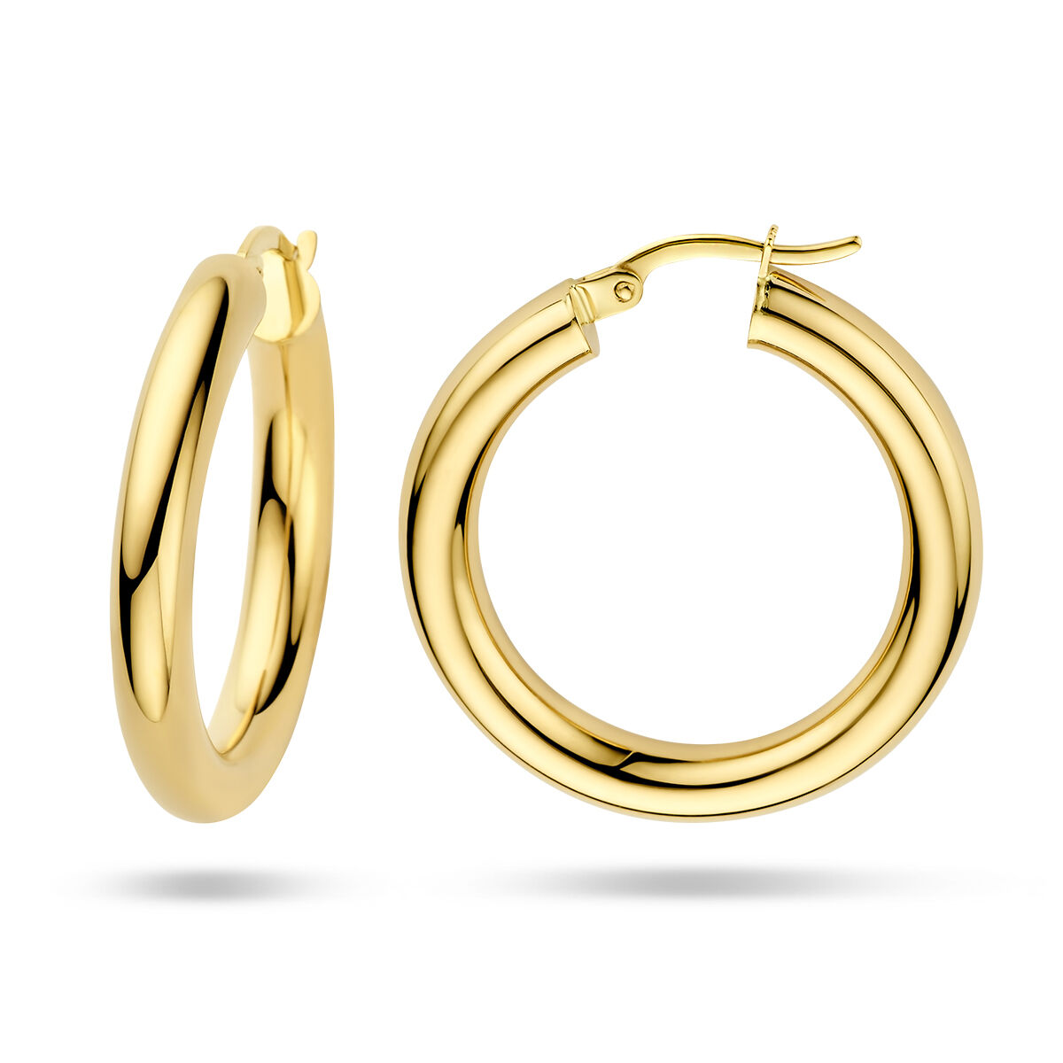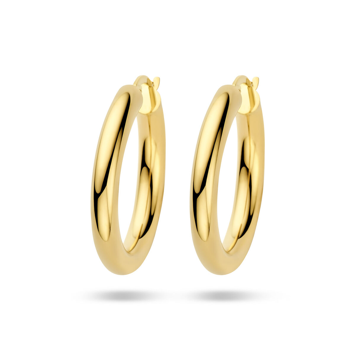 14k Geelgouden oorringen uitgevoerd met een stevige scharnier sluiting. De oorringen hebben een diameter van 21mm.