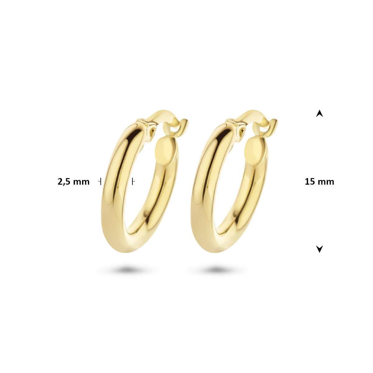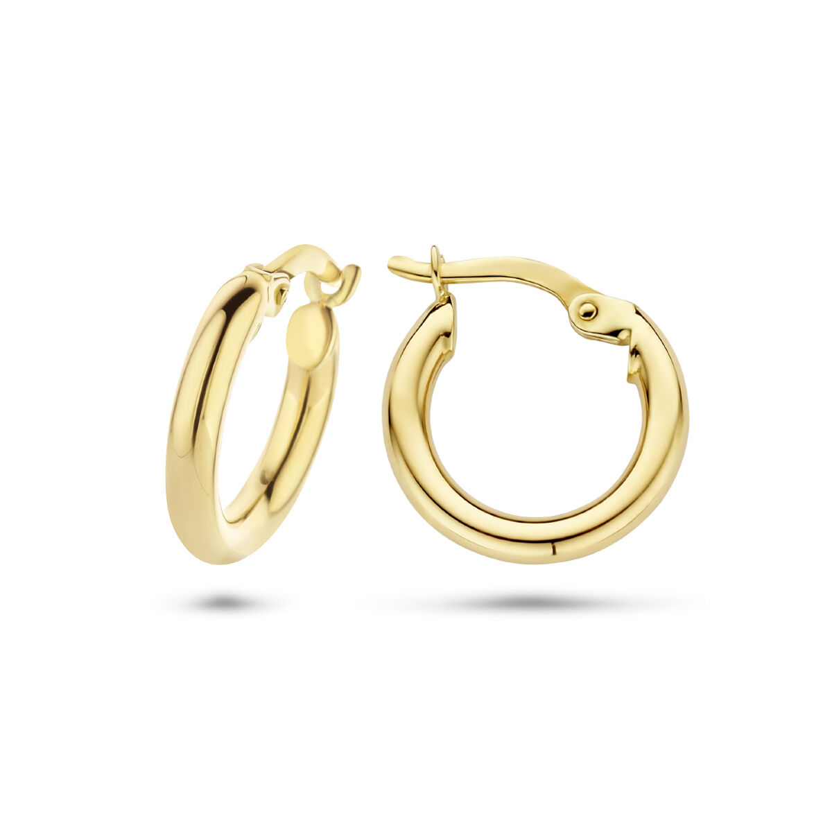 14k Geelgouden oorringen met een ronde buis en een hefboom-sluiting.