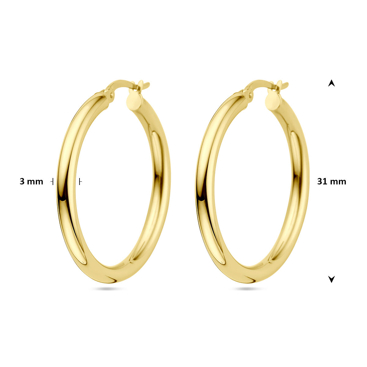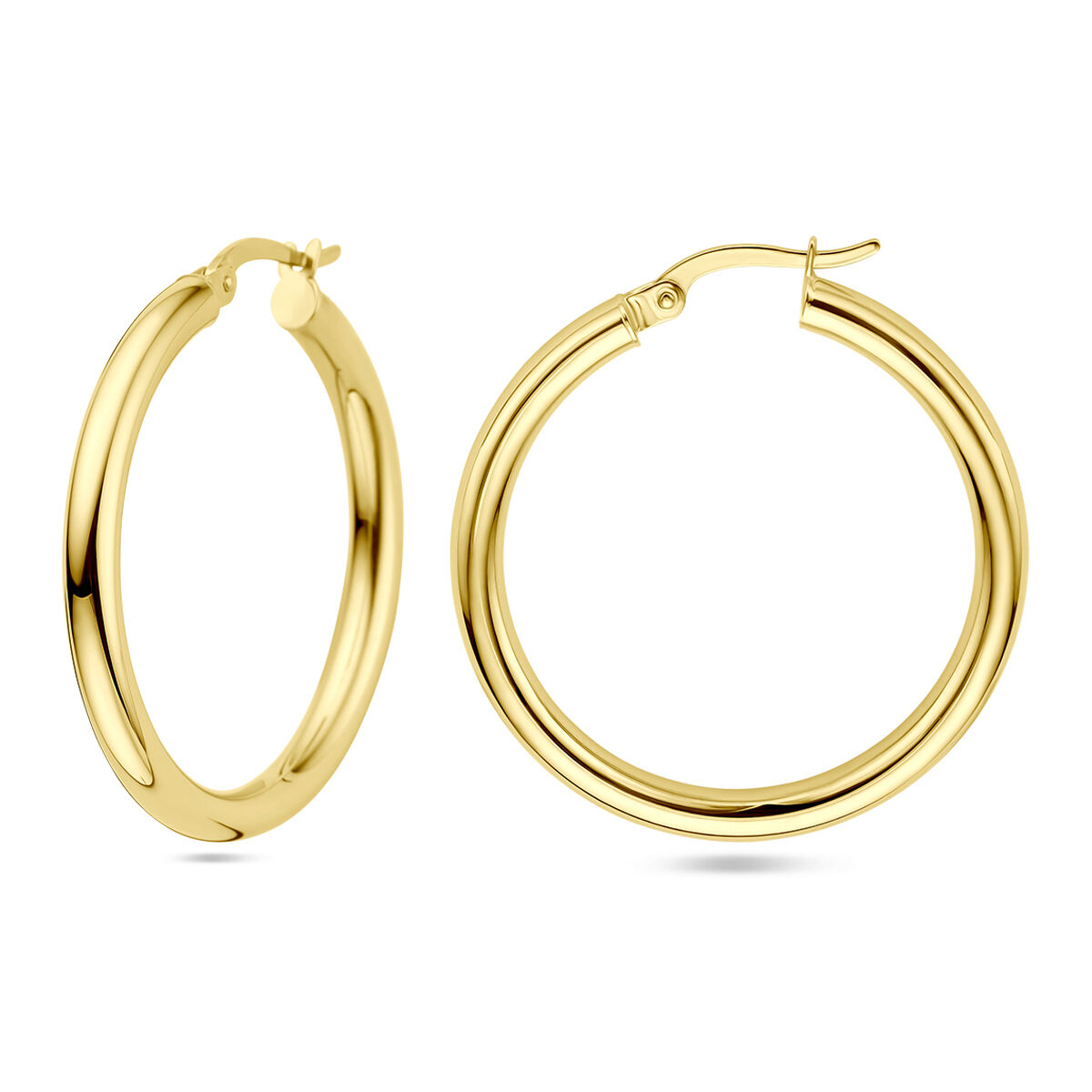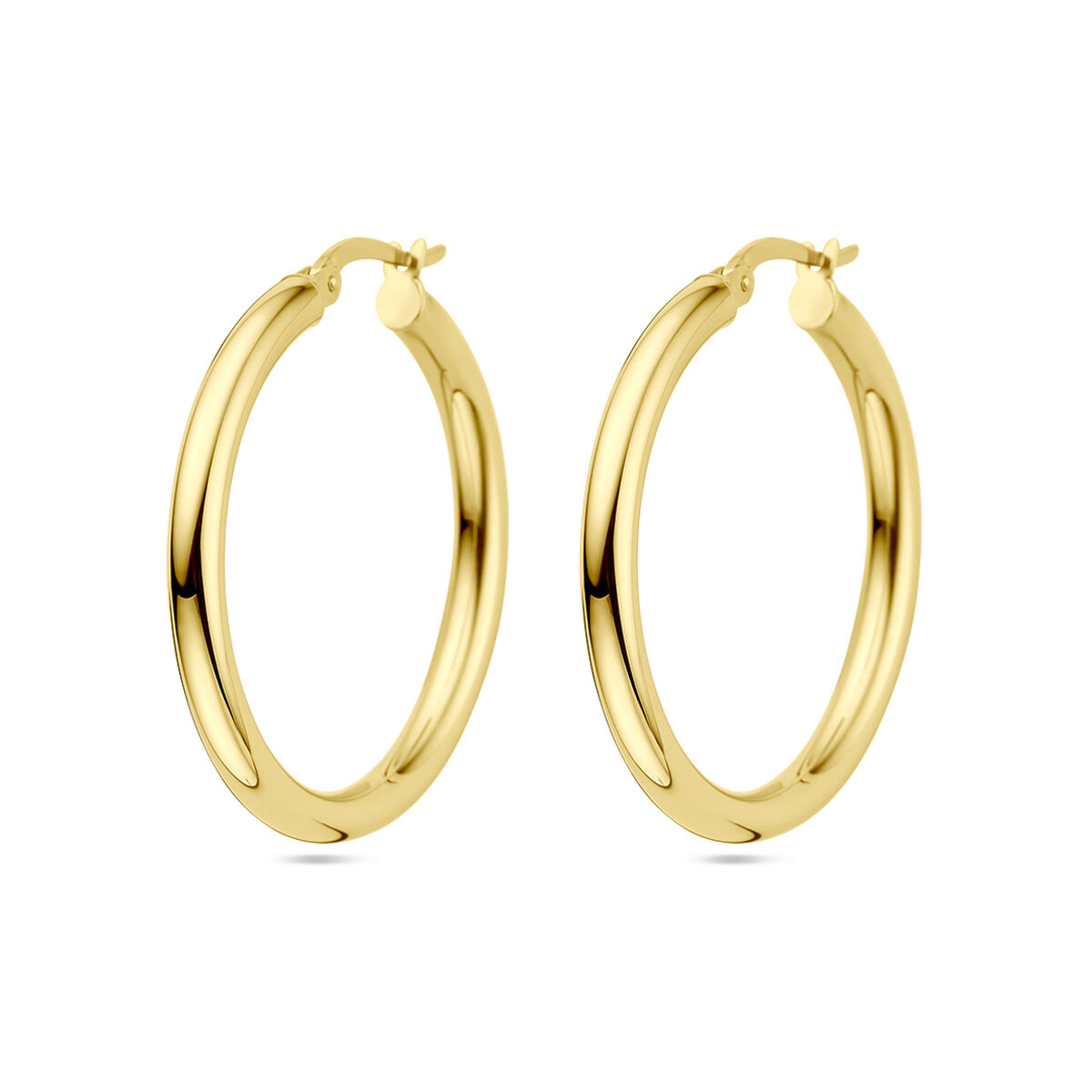Geelgouden oorringen met een ronde buis en een hefboom-sluiting.