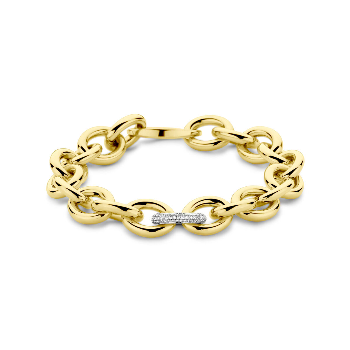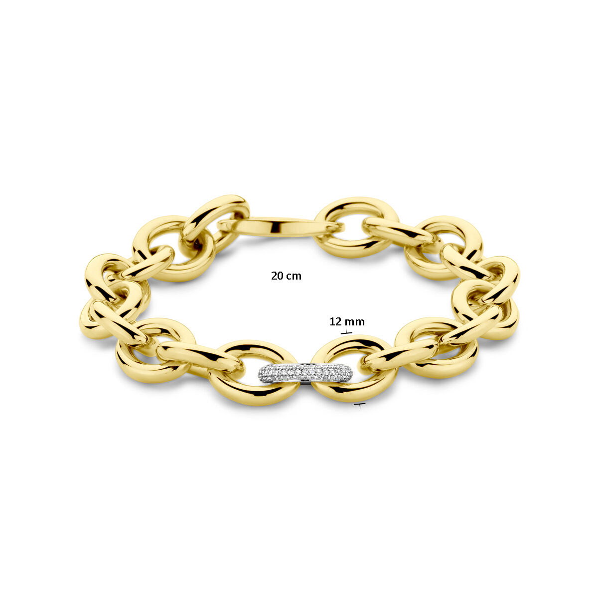 18k Bicolor geel- en witgouden armband uitgevoerd met diamanten. De armband heeft een draaglengte van 20cm en een schakelbreedte van 12mm. Uitgevoerd met een karabijn sluiting.