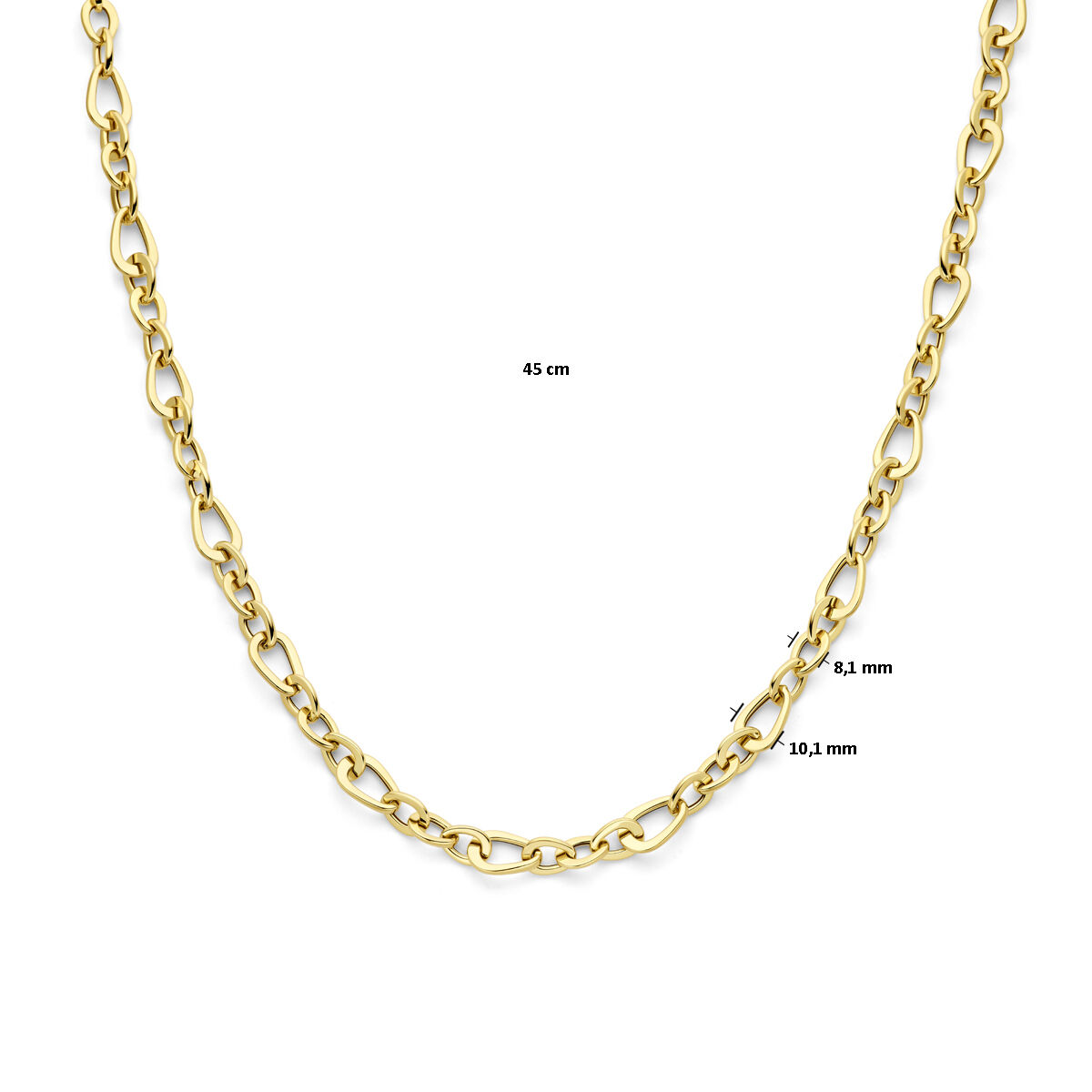 14k Geelgouden met een draaglengte van 45cm. Het collier heeft een schakelbreedte van 10mm. Uitgevoerd met een karabijnslot.