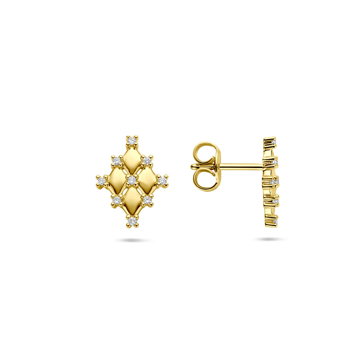 14k Geelgouden oorknoppen uitgevoerd met diamant. De oorknoppen hebben een afmeting van 12x9mm. Het totale diamantgewicht is 0.09ct.