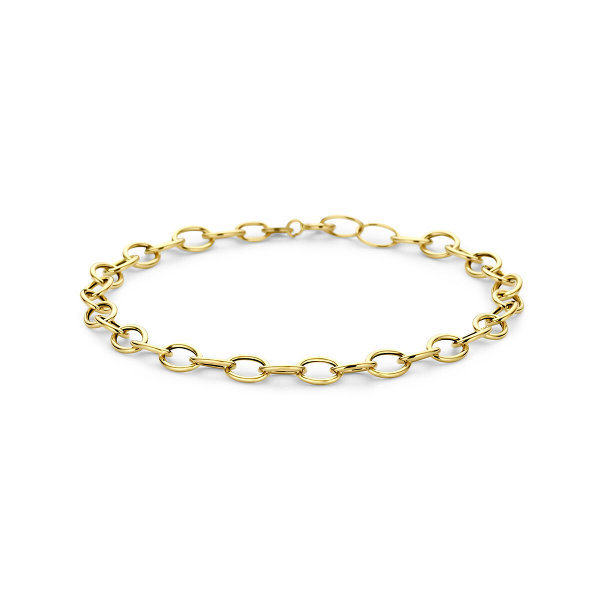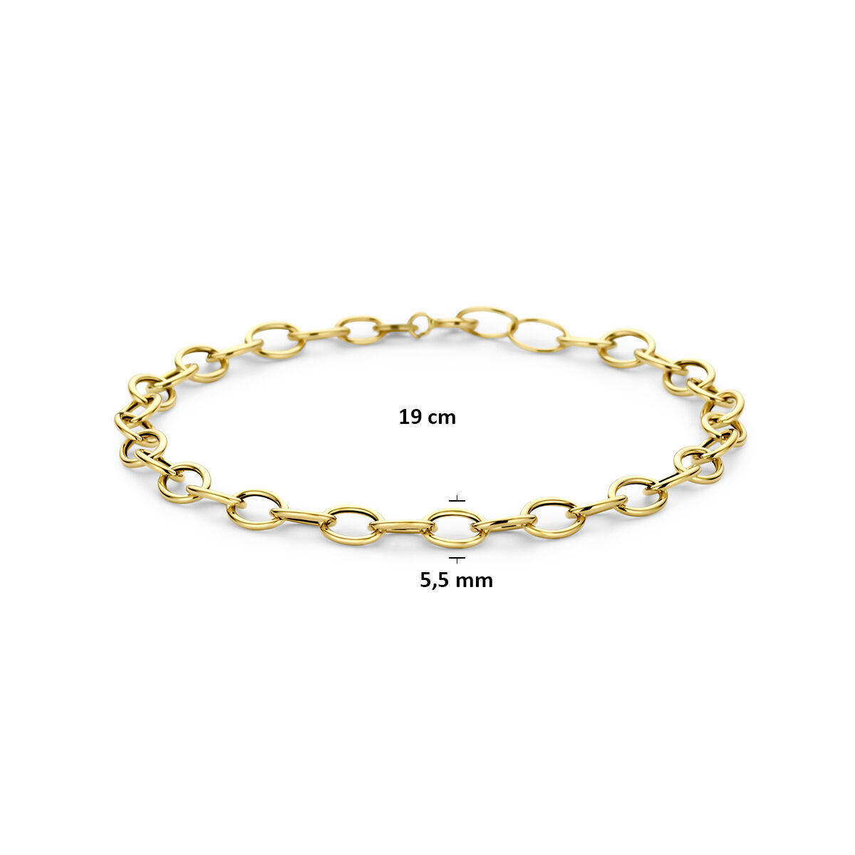 14k Geelgouden armband met een schakelbreedte van 5.5mm en een draaglengte van 19cm.