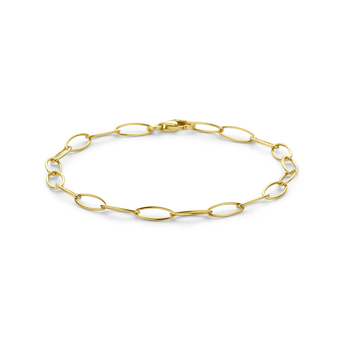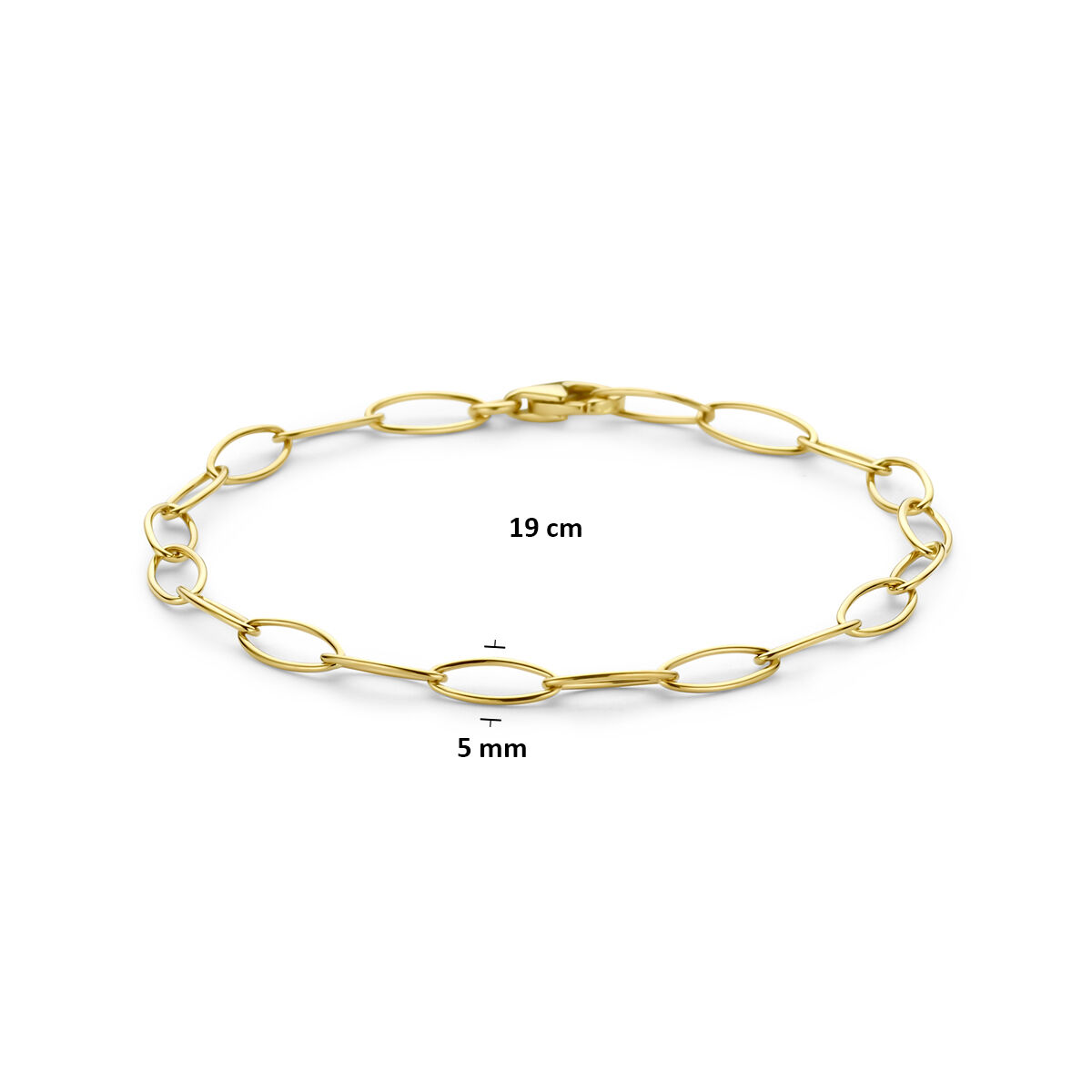 14k Geelgouden armband met een schakelbreedte van 5mm en een draaglengte van 19cm. Uitgevoerd met een karabijnsluiting.