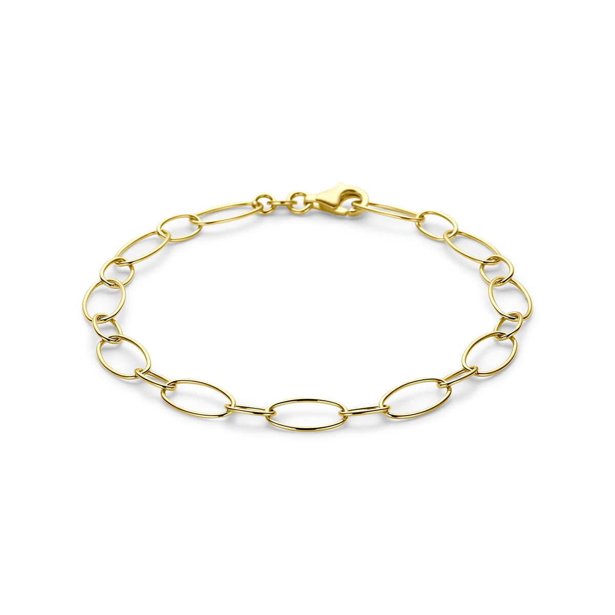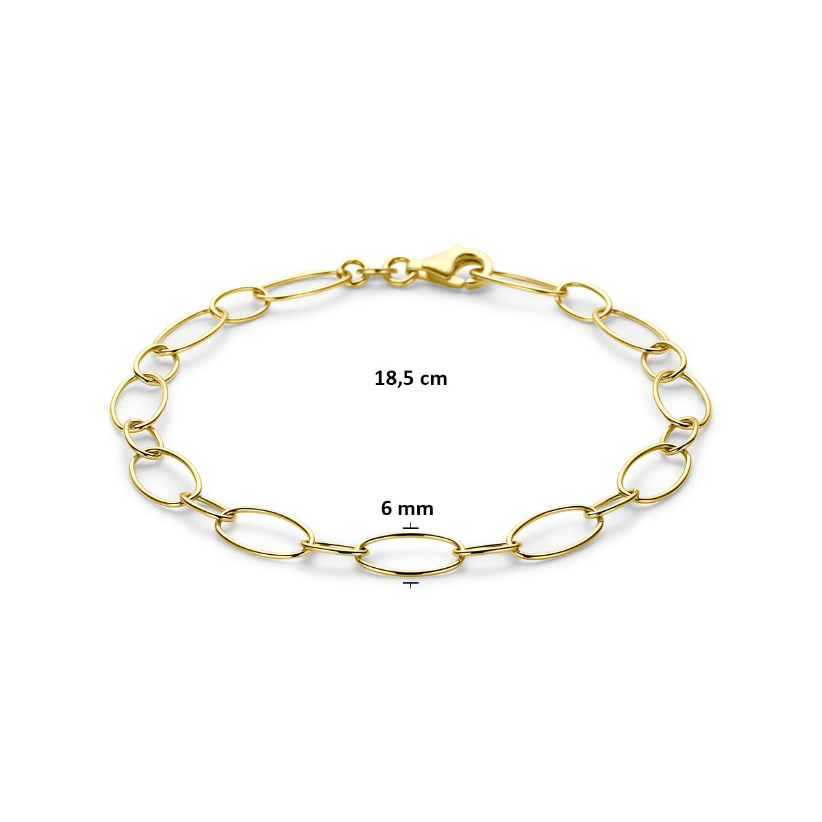 14k Geelgouden armband met een breedte van 6mm. De armband heeft een lengte van 18.5cm en is uitgevoerd met een karabijnsluiting.