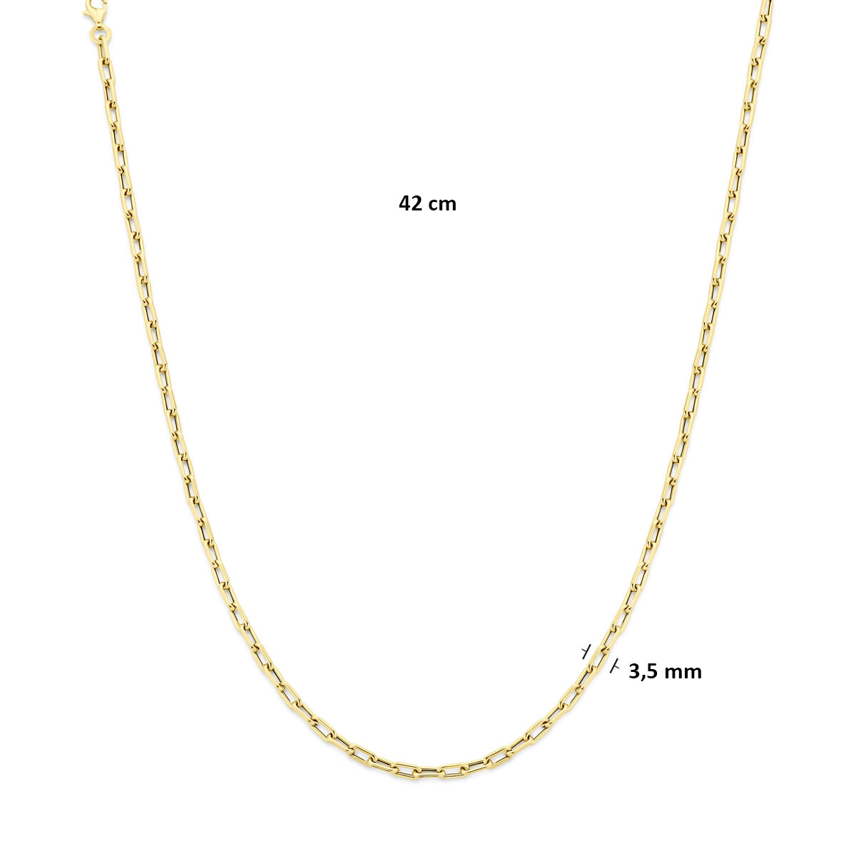 14k Geelgouden collier met een schakelbreedte van 3.5mm en een draaglengte van 42cm. Uitgevoerd met een karabijnsluiting.