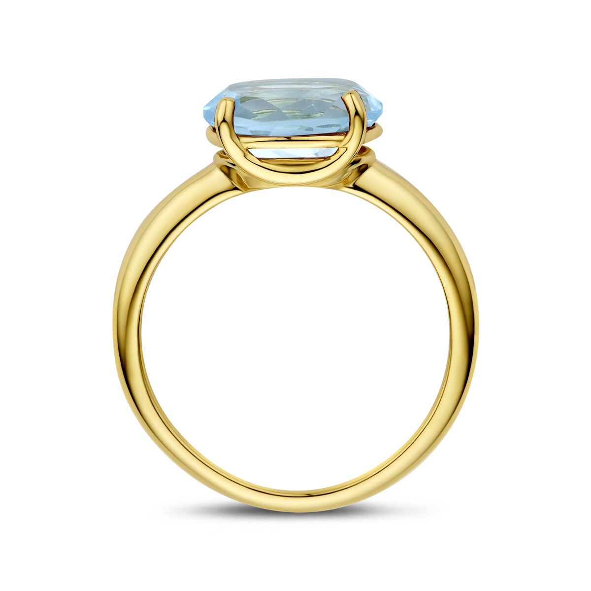 14k Geelgouden ring uitgevoerd met blauw topaas. De ring heeft een afmeting van 10x8mm.