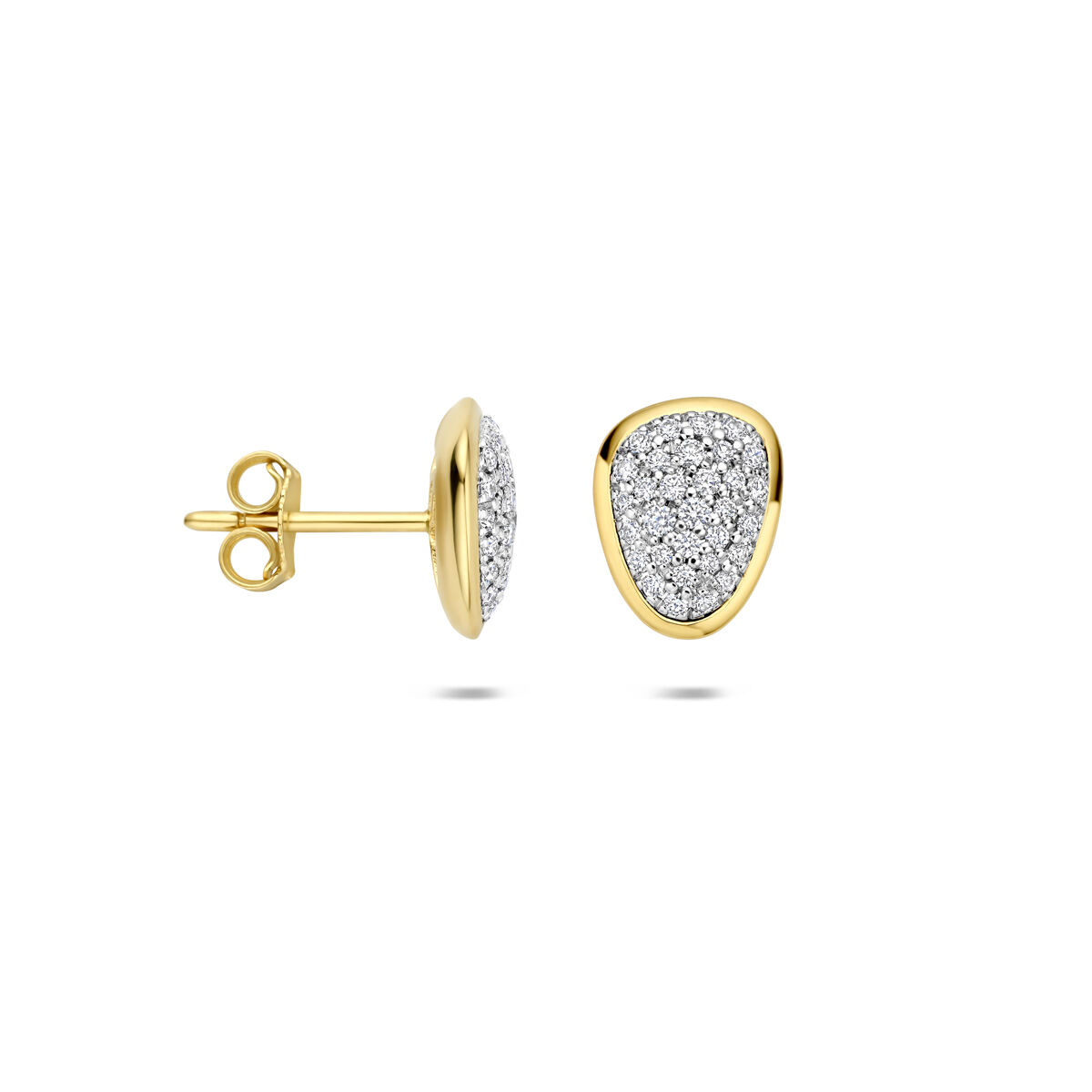 14k Bicolor geel en witgouden oorknoppen uitgevoerd met schitterende diamant. De oorknoppen hebben een afmeting van 10.5x8mm. Het totale diamantgewicht is 0.35ct.