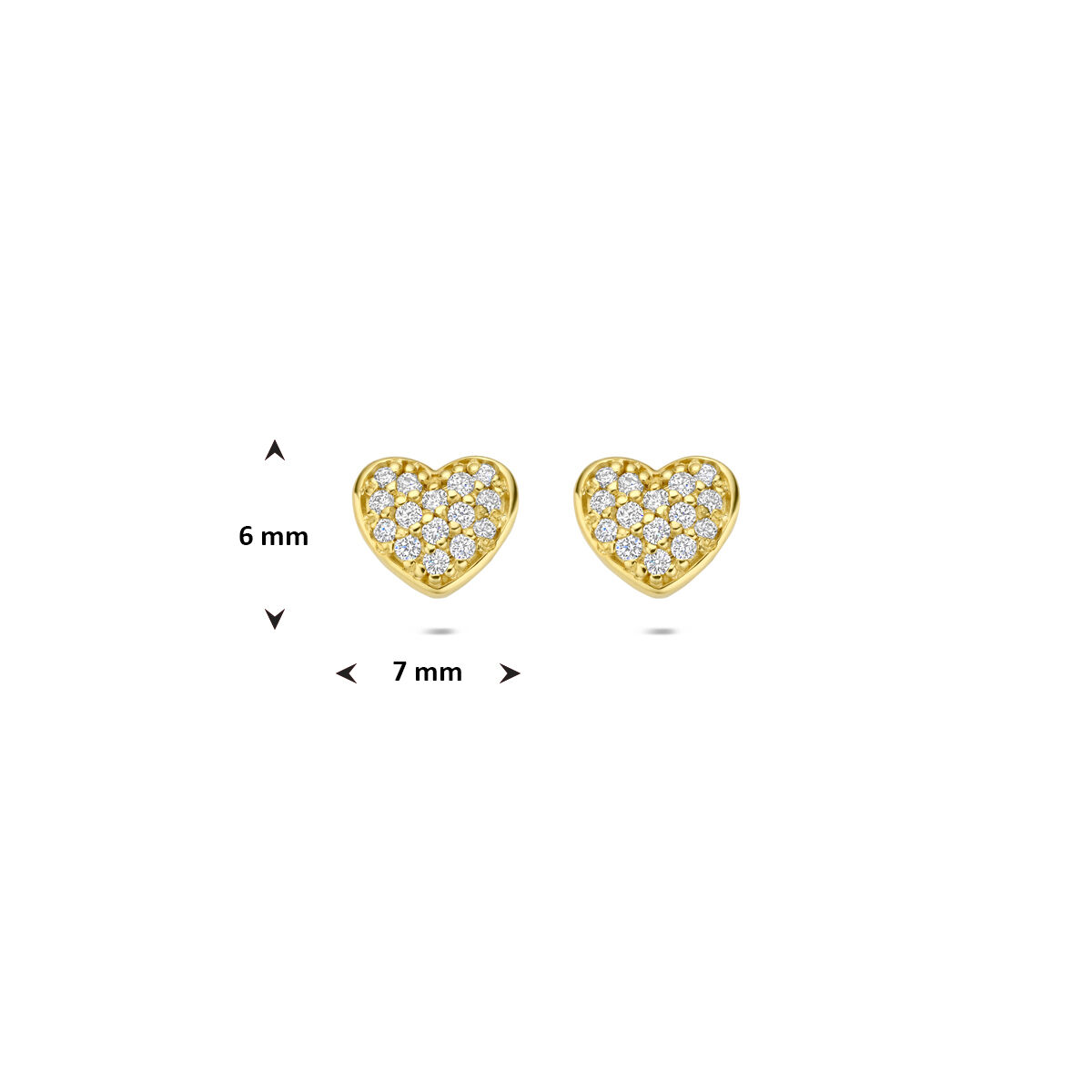 14k Geelgouden oorknoppen uitgevoerd met een hartje diamant. De oorknoppen hebben een afmeting van 6x7mm. Het totale diamantgewicht is 0.17ct.