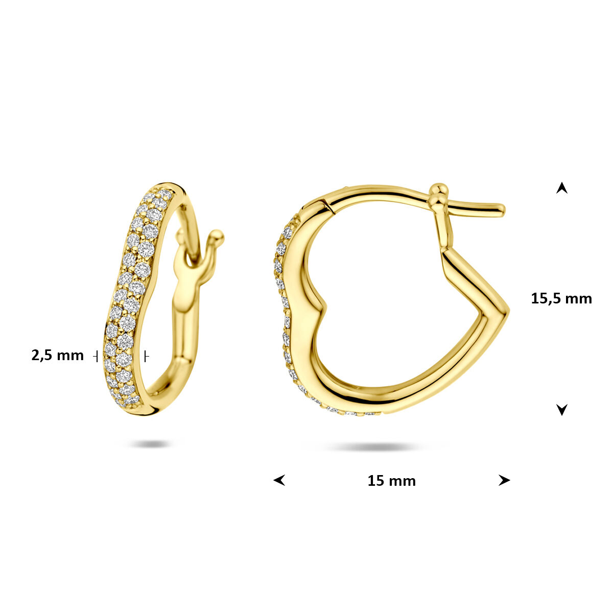 14k Geelgouden oorringen in de vorm van een hart met diamant. De oorringen hebben een afmeting van 15.5x2.5mm. Het totale diamantgewicht is 0.29ct.