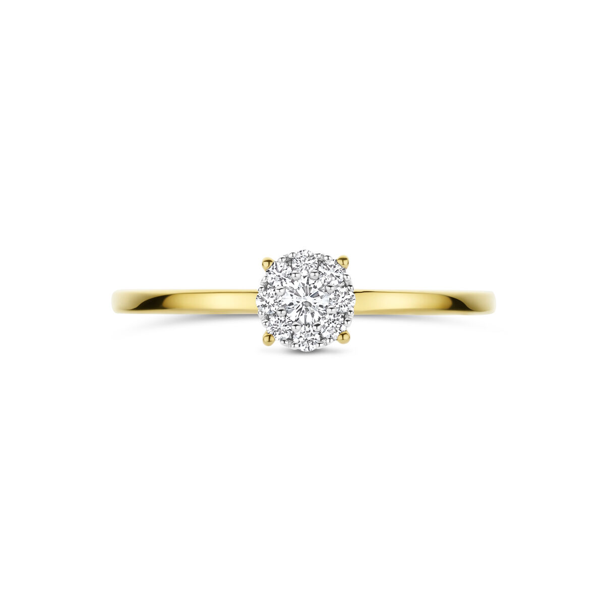 14k Bicolor geel en witgouden ring uitgevoerd met diamant. De ring heeft een diameter van 5mm. Het totale diamantgewicht is 0.13ct.