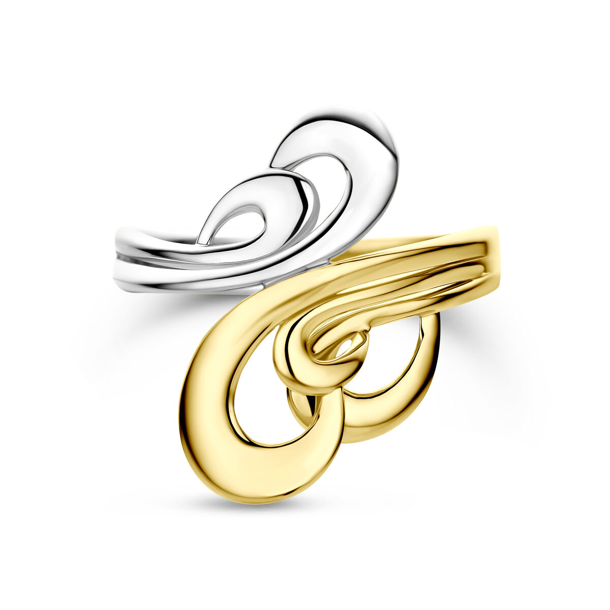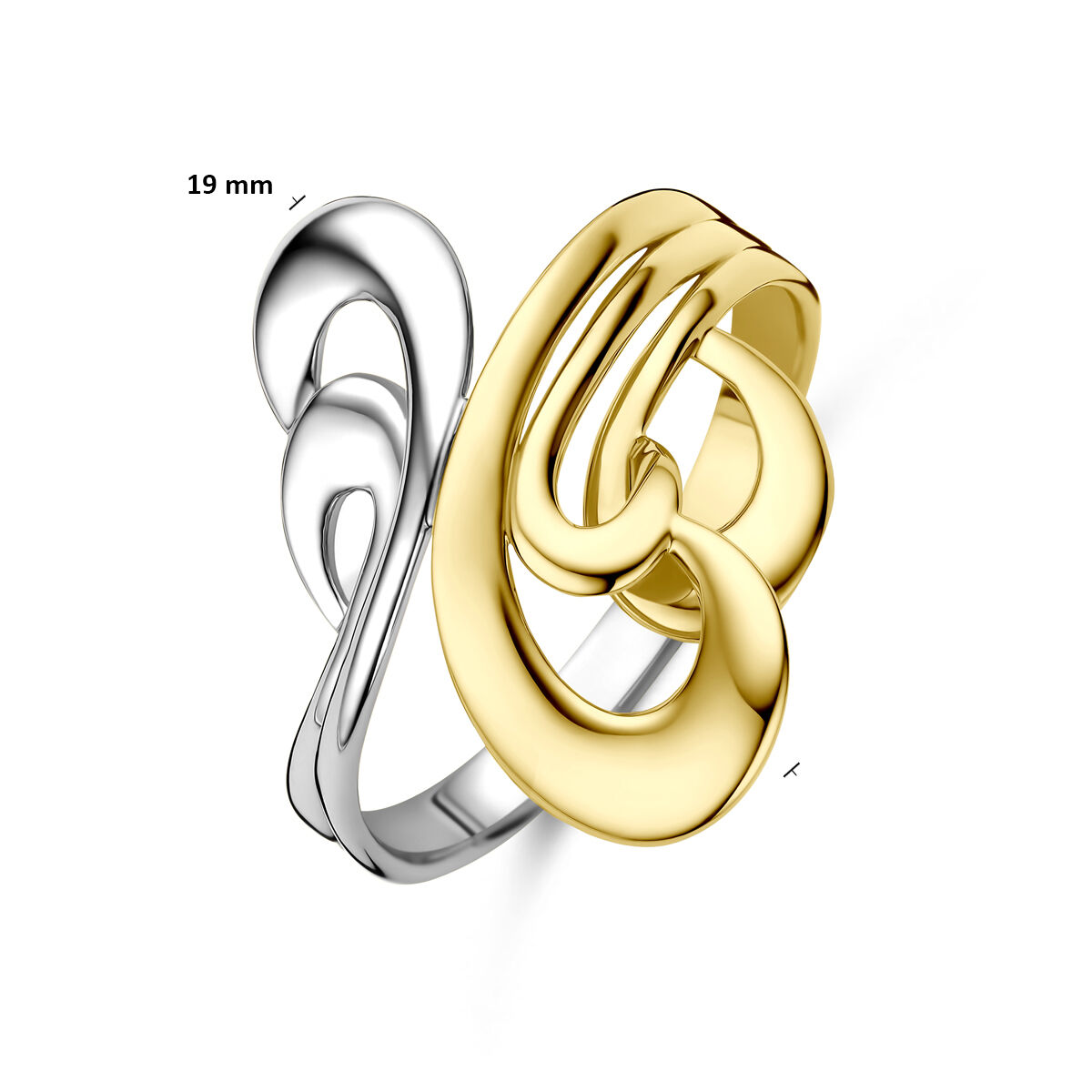 14k Bicolor geel en witgouden ring met een breedte van 19mm.
