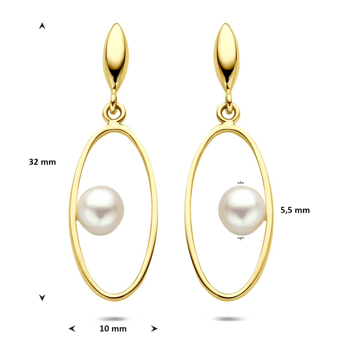 14k Geelgouden oorhangers uitgevoerd met parel. De oorhangers hebben een totale hoogte van 32mm.
