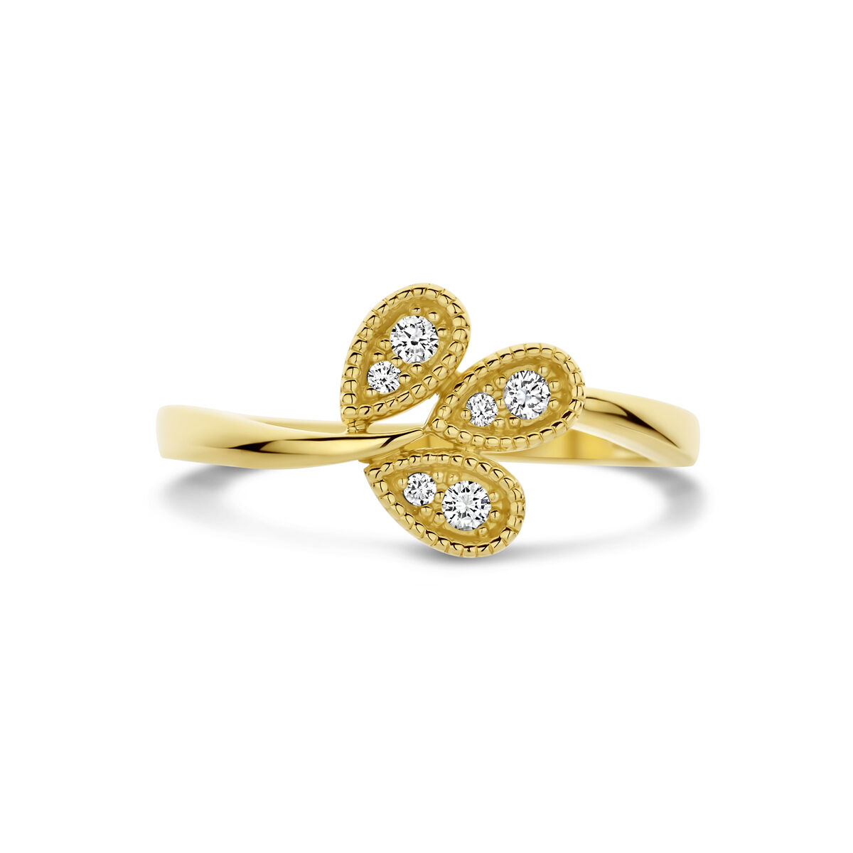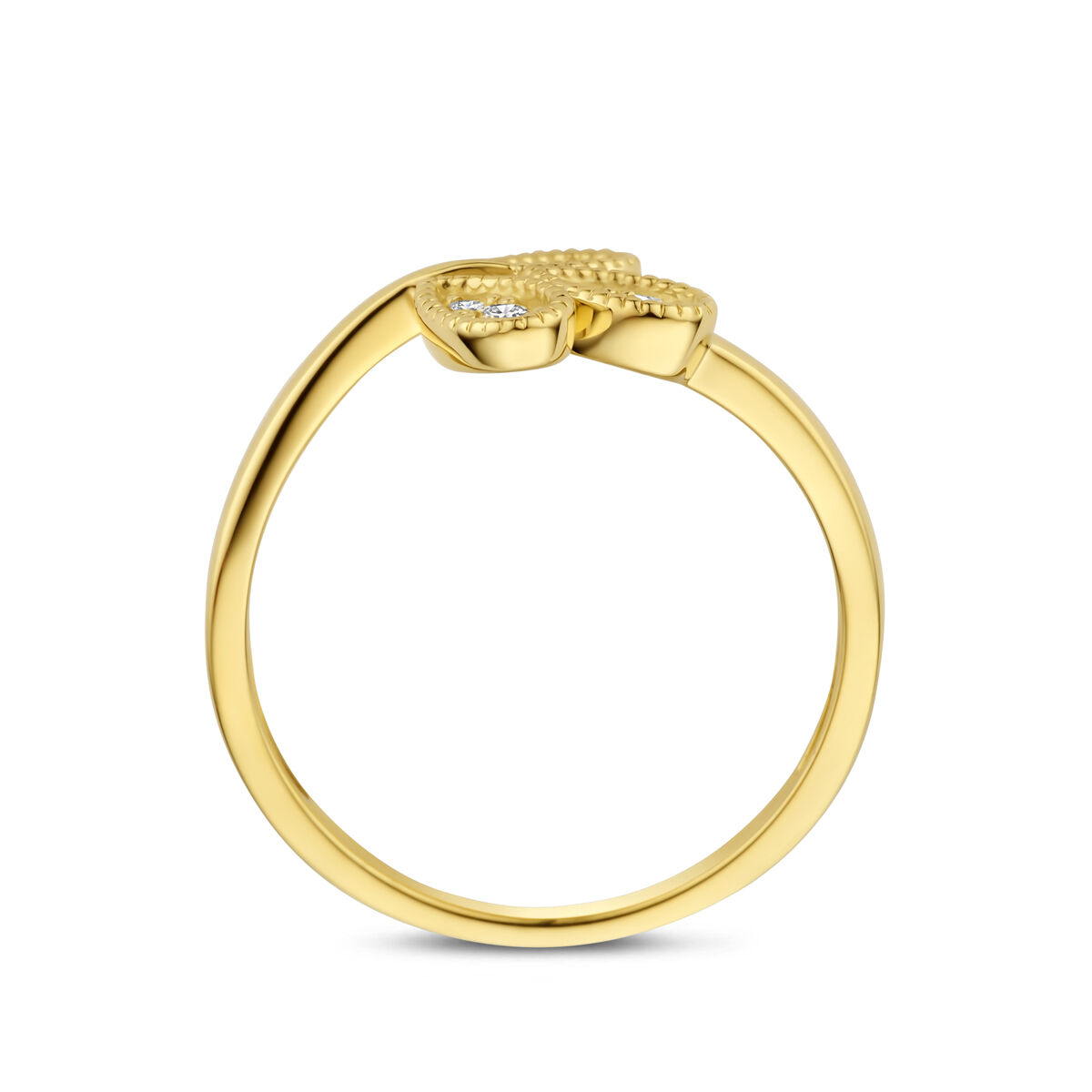 14k Geelgouden ring uitgevoerd met diamant. De ring heeft een breedte van 10mm. Het totale diamantgewicht is 0.09ct.