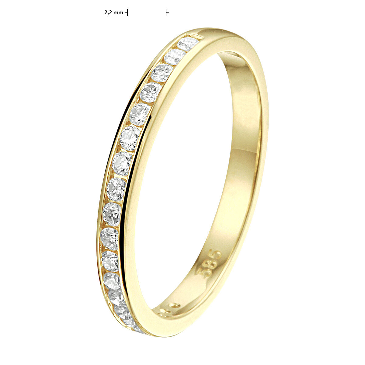 14k Geelgouden ring uitgevoerd met een schitterende diamant rij. De ring heeft een breedte van 2.2mm.