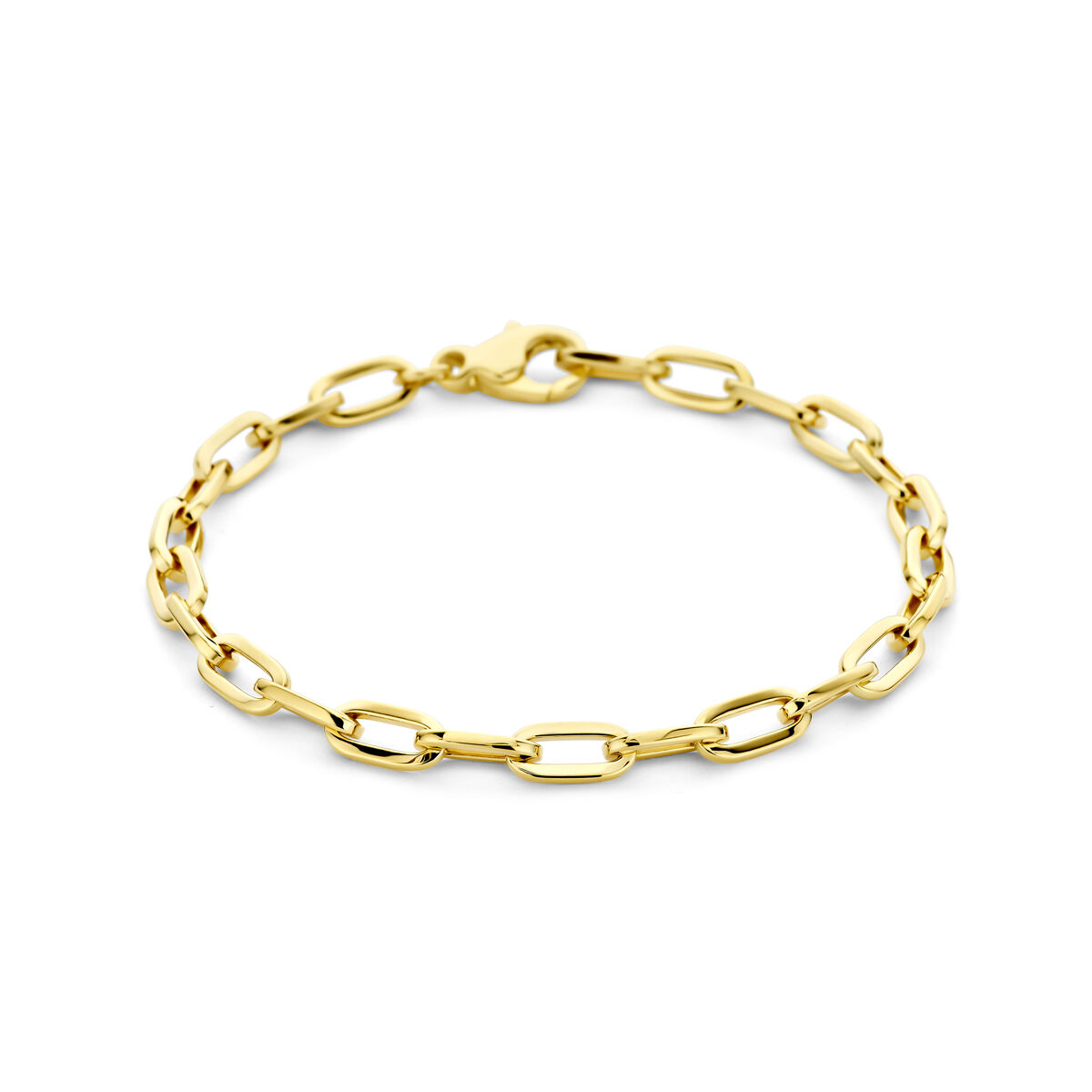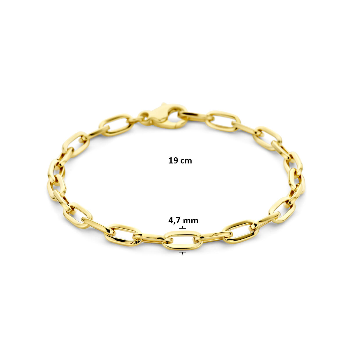 14k Geelgouden armband met een schakelbreedte van 4,7mm en een draaglengte van 19cm. Uitgevoerd met een karabijnsluiting.