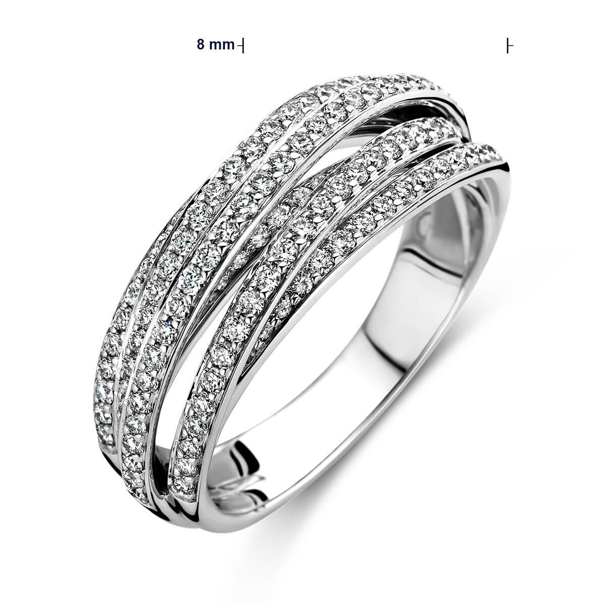 14k Witgouden ring uitgevoerd met diamanten. De ring heeft een breedte van 8mm.
